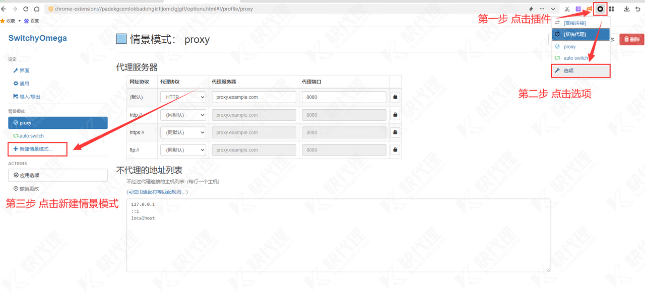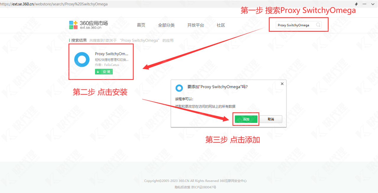 2、输入Proxy SwitchyOmega并搜索,点击安装、添加