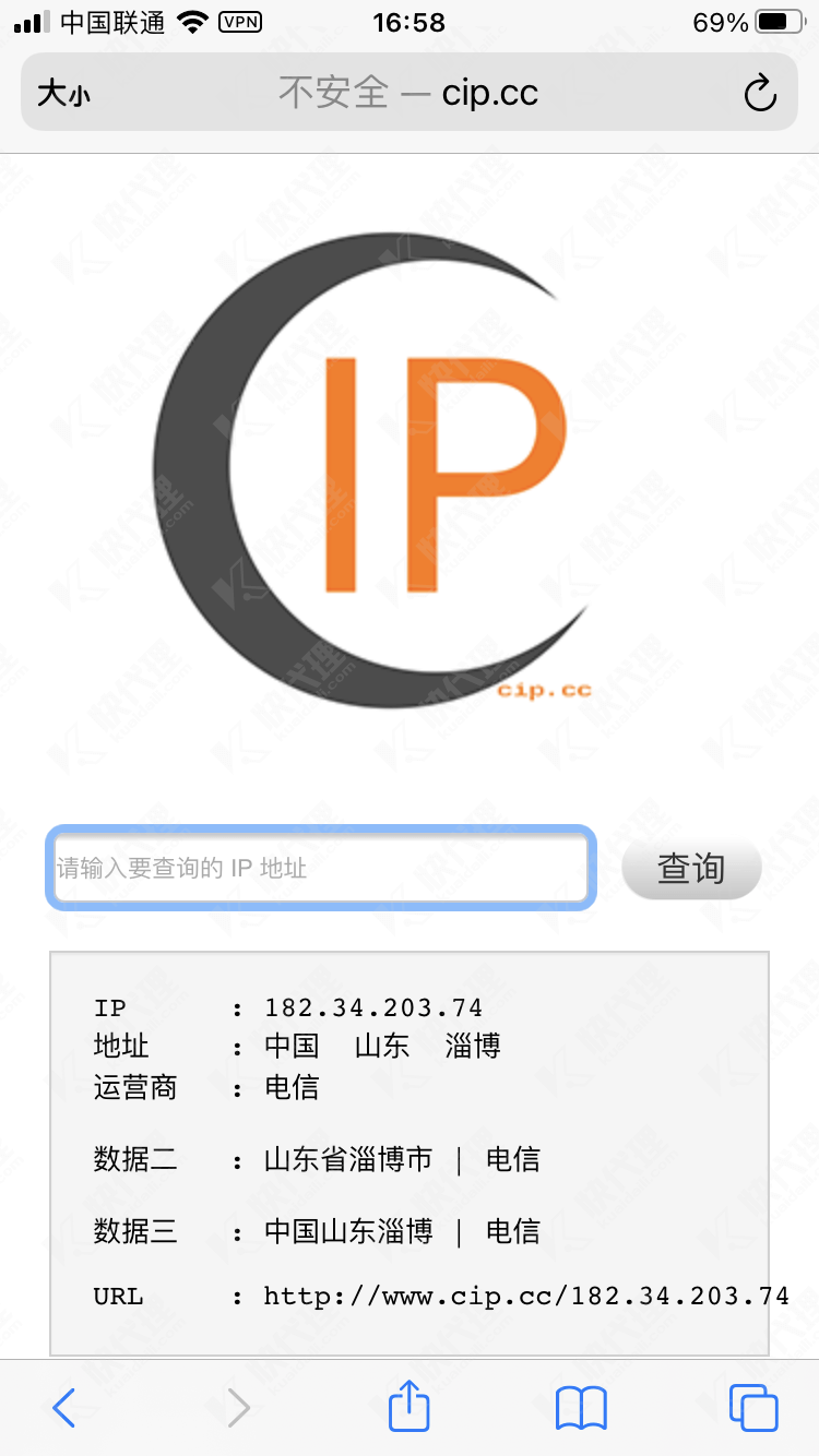 6. 在浏览器中进入http://www.cip.cc/ ,结果页面的IP地址和设置的代理IP一致,说明代理设置成功